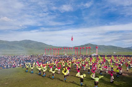 8月6日至8日,2020四川甘孜山地文化旅游節系列活動之一的色達金馬文化節在色達縣扎青塘草原舉辦。當地群眾身著節日盛裝載歌載舞、歡聚一堂,文藝表演、賽馬、傳統藏族民俗體育比賽、傳統服飾表演、民間藝術和非遺展演等活動精彩紛呈。