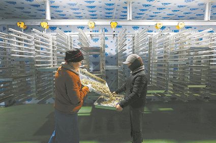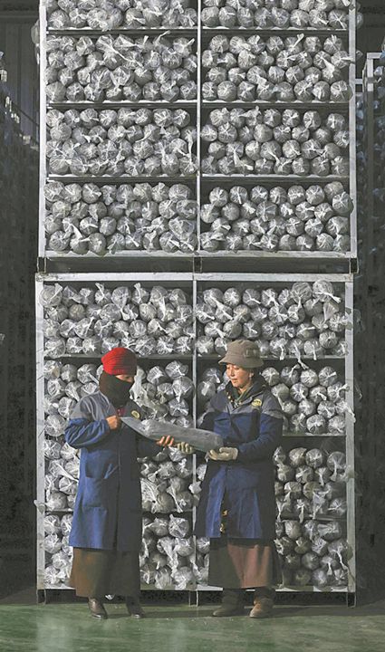 2021年新年伊始,甘孜州的氣溫已經降到了零攝氏度以下。1月5日,位于雅江縣八角樓鄉松茸村的松茸產業園菌種菌包廠房里卻是熱氣蒸騰,數十位工人正有條不紊地往菌種架上放置菌包。很快,3米多高的鐵架上就密密匝匝的堆滿了制作好的菌包。廠房的旁邊就是食用菌存儲冷庫,各類食用菌在這里進行分揀、定級、包裝。十多個小時后,經物流車送出的一箱箱食用菌產品就會出現在省內外各大超市的生鮮貨架上,市民在千里之外也能嘗到大山里的味道。