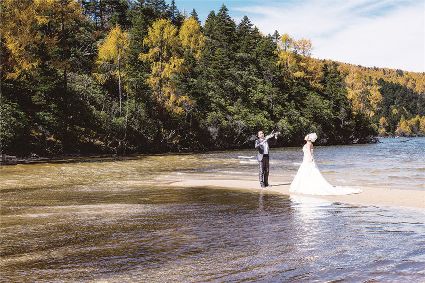 現(xiàn)在,越來越多的年輕人到木格措拍攝婚紗照,美麗的紅海草原自帶一種不施粉黛的美。用“花?!毙稳菁t海草原,未免太過俗氣,一望無際的格?;ㄕ孤缎︻仯鷻C勃勃,穿著純潔婚紗的新娘好似從畫里走出來一般,毫無違和感,與心愛的人一起在這里許下生命里最珍貴的心愿。