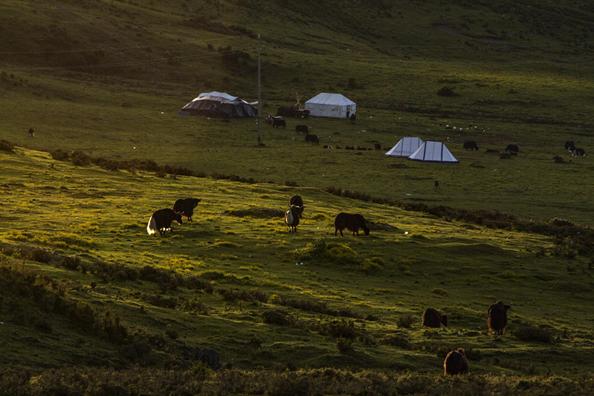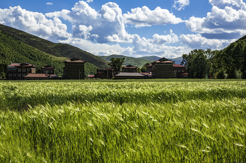 然后行走在山水之間,擁抱大自然,尋找屬于自己的“詩和遠方”。油綠的青稞、小麥,散發出濃郁的田園風味;天邊群山起伏,磅礴的氣勢瞬間感覺人在自然面前實在太渺小;帳篷點綴著開滿野花的牧場,牦牛哞鳴,一片生機,細細體會牧民“逐水草而居”的生存智慧......