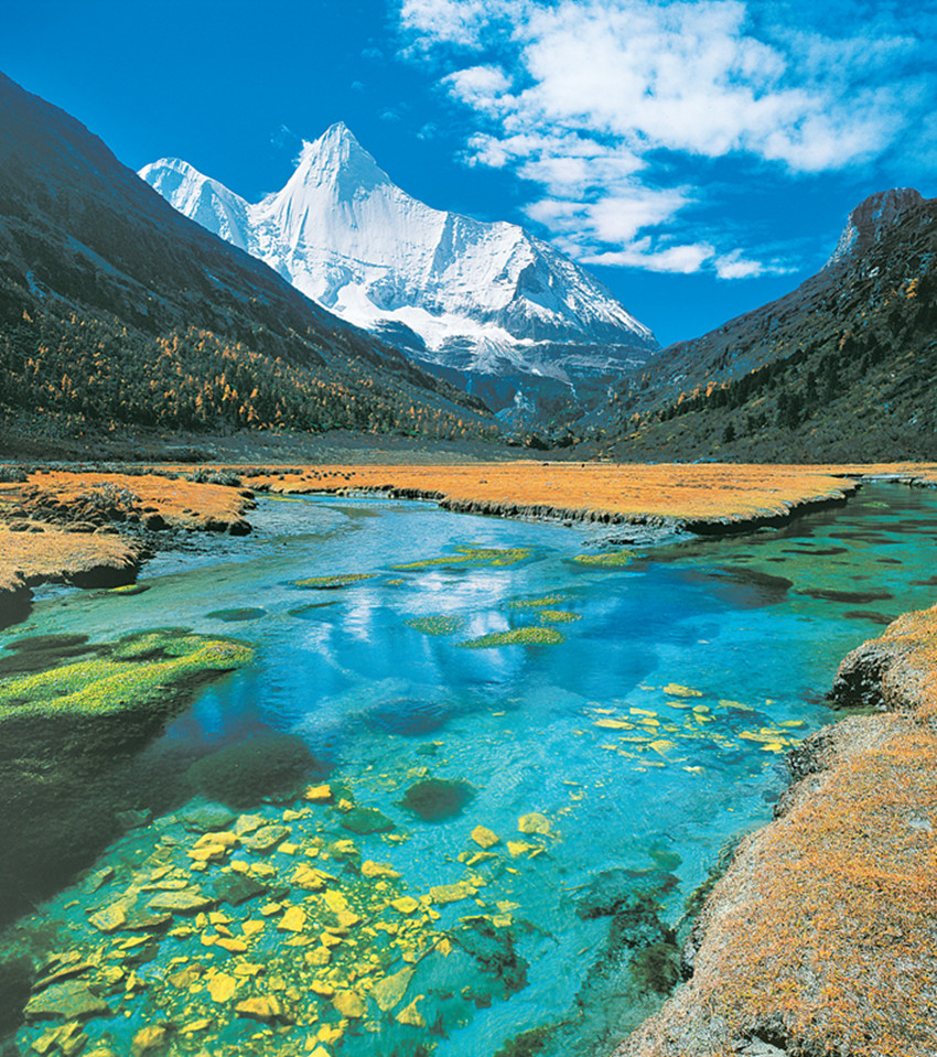 稻城亞丁深藏于甘孜州西南部川滇交界處一隅,自上世紀20年代美國探險家約瑟夫·洛克到訪并通過《國家地理雜志》撰文介紹、英國作家詹姆斯·希爾頓掀起一股尋找香格里拉的熱潮后,由于戰亂頻仍等原因,便長期“養在深閨人未識”。1995年,我省著名攝影家呂玲瓏偶然闖進這片神圣的土地,再次“發現”這顆遺落深山被歲月塵封的明珠,稻城亞丁通過他的一系列影像“橫空出世”,重新震驚世人。