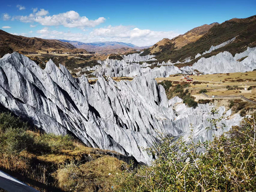 墨石公園的石林,分布在雅礱江支流慶大河的東側坡地上,川藏公路從旁經過。離開公路,沿一條小路行幾百米,就是觀景臺。