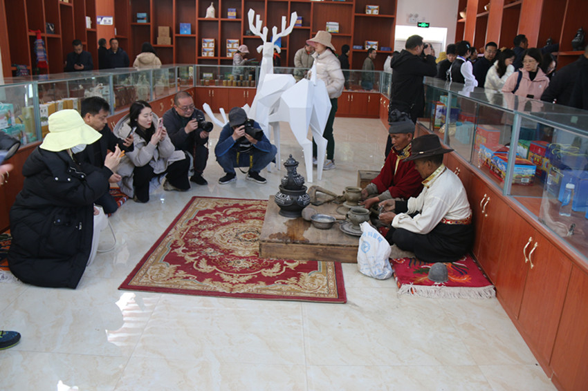 阿西土陶是稻城縣獨特的手工藝產品,國家級非遺項目,被譽為稻城亞丁“四絕”之一。在赤土鄉子定村,采風團了解阿西土陶非遺文化保護與利用情況。采訪年過六旬的省級非遺傳承人格里,現場觀看制坯、貼瓷。據介紹,這項非遺技藝已經走進校園,小朋友們用阿西土陶制作成海螺、杯子、茶壺等器具,非遺已經融入了稻城人的生活。