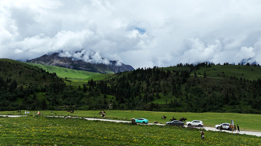 夏秋之交,藏在深閨的理塘縣格聶山風景如畫,吸引了不少自駕、徒步、登山的游客眺雪山、賞草原。
