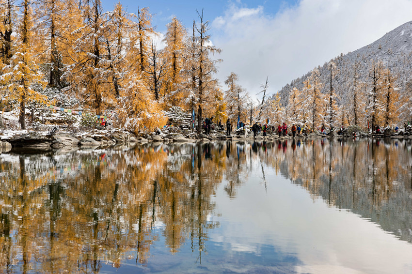 黨嶺村位于丹巴縣丹東鎮,這里植被茂密、湖泊眾多、雪山壯美。深秋時節的黨嶺,就像是一幅鑲嵌在橫斷山系中的絕美油畫,將雄奇壯美的雪峰、滿山遍野的彩林、星羅棋布的高山湖泊以及純樸的風情村寨等,諸多景色完美地融合在一起,共同構成了黨嶺這一幅幅絕美的畫卷。