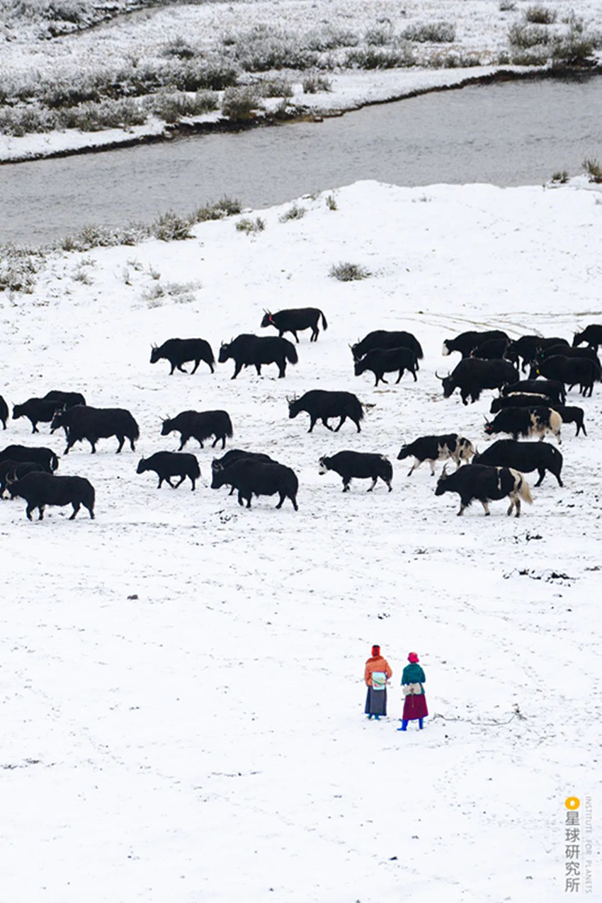 高原上定居不易而自然還有更多的考驗,高寒貧瘠的土地,山脈阻隔的交通,峽谷中蓄勢的山洪,斷裂帶上頻繁的震顫,隨時都可能給人們的生活籠罩上一層陰影。所幸從古至今,不斷地適應、不斷地創造,成為了這片人間的底色。為了抵御高原的寒冷,人們用山羊等動物皮毛織起布匹,縫制寬袍長袖的袍子,發展出特色鮮明的藏裝;為了對抗物產的貧瘠,人們飼養牦牛,從牦牛奶、牦牛肉中獲取營養,用牦牛毛織成的布料做帳篷,點燃牦牛糞生火。