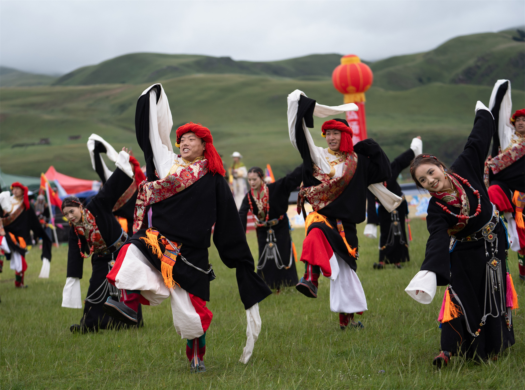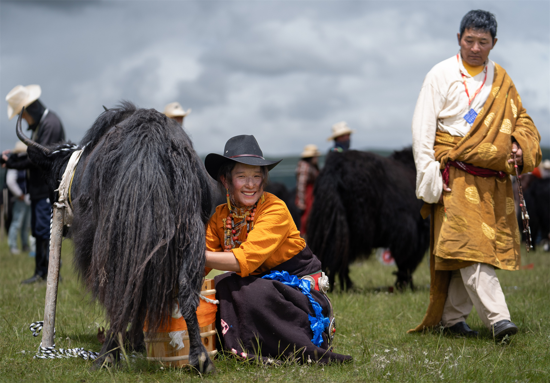 7月27日,四川省甘孜藏族自治州白玉縣第二屆“盛德白玉·草原最牛”鄉(xiāng)村民俗文化活動在阿察鎮(zhèn)日通草原啟幕。文藝匯演、牦牛選美、擠奶比賽、賽馬等活動在接下來兩天里將輪番上演,吸引當(dāng)?shù)啬撩窈捅姸嘤慰颓皝碛^賞。