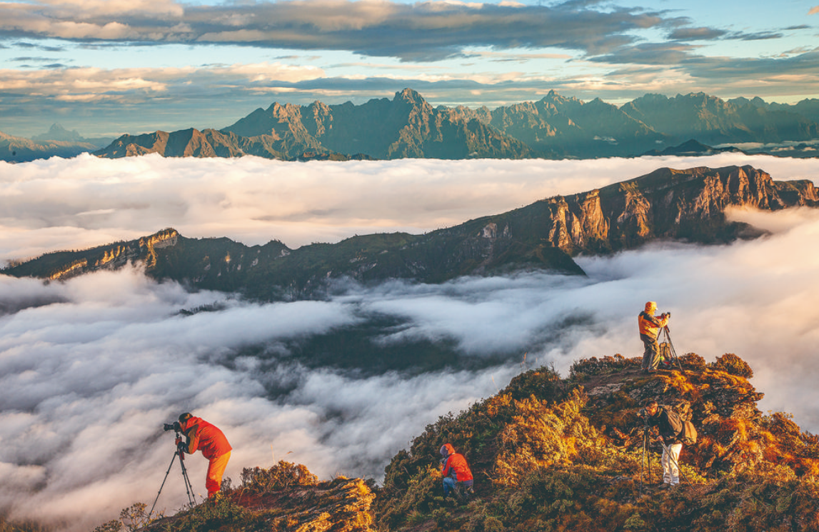 在這條路上行走,雖會遇到種種因天氣或地質(zhì)路況造成的危險,但卻阻擋不住人們前行的腳步。作為從事攝影多年的風光攝影師,我也曾長期奔波在川藏線上。每當光影勝景乍現(xiàn),我心中都會激情涌動,充滿了對這一方土地和人們深深的愛。而能夠把這些美景攝入鏡頭,并與朋友們分享,于我而言就更感榮幸。川藏線是一條鮮花盛開之路。在康定市境內(nèi)聳立的海拔7556米的大雪山是蜀山之王,橫斷山脈最高峰——貢嘎山。它如同一朵無比巨大的雪蓮花,綻放在天地之間。在它的東坡海螺溝至康定城路途中,有一個名叫雅家埂的山口。每當春夏交替,山口會盛開漫山遍野的各色杜鵑花,在藍天白云的映照之下,一眼望去,簡直就是斑斕無比花的海洋。貢嘎山區(qū)域也是聞名世界的植物模式標本采集地,百年前,世界著名的植物學家威爾遜所采集命名的許多植物均出自這里,其專著《中國——園林之母》1929年出版,轟動世界。