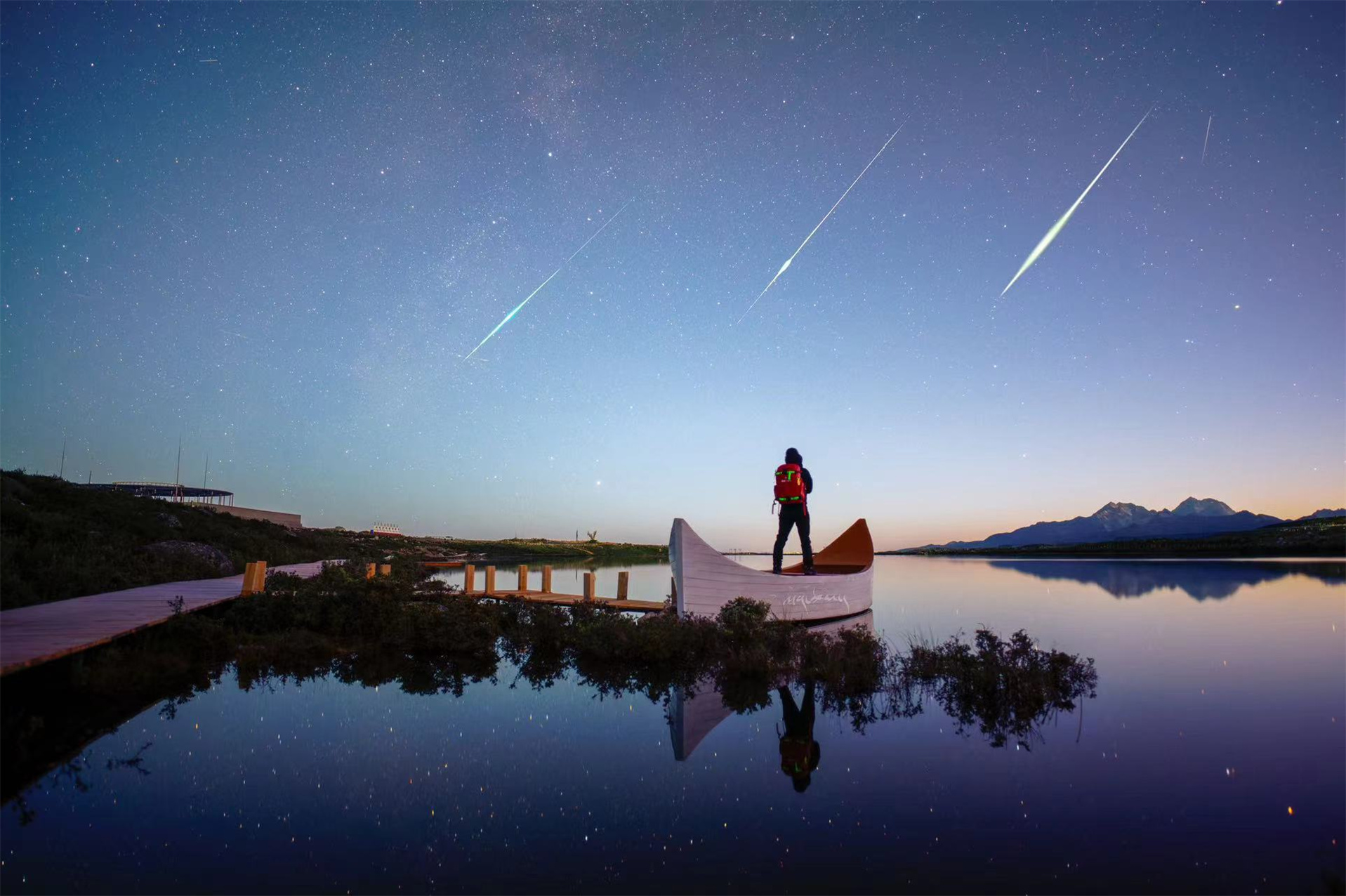 8月12日晚至13日晨,英仙座流星雨“光臨”地球、綻放夜空,吸引了眾多天文愛好者“追星”。我州不少星空攝影愛好者成功捕捉到了英仙座流星雨的群內流星劃過天際的浪漫畫面和精彩瞬間。在康定市斯丁措,流星雨恰逢極光,更是為觀測者帶來雙重驚喜。圖為記者捕捉到英仙座流星雨與極光同框的畫面,絢爛的紅色極光扮靚夜空,讓夜色顯得格外迷人。