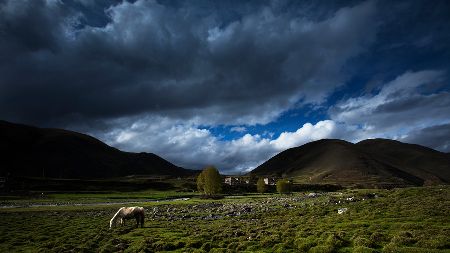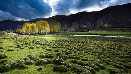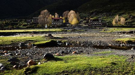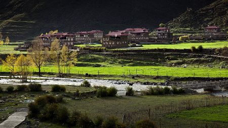 湛藍的天空下,雄鷹在盤旋,牛羊在安詳地漫步吃草,靜靜的小河在山邊蜿蜒流淌,充滿綠意的白楊樹在風中搖曳,藏式民居不時升起縷縷炊煙,寂靜、空曠的原野深處偶爾會傳來幾聲狗叫高原的陽光又賦予這幅風景畫凝重的色彩這樣的畫面叫人心醉,讓人留戀忘返從折多山腳下至新都橋鎮,再至塔公草原,處處都是入畫的美景,不愧稱為“攝影家的天堂”。