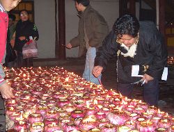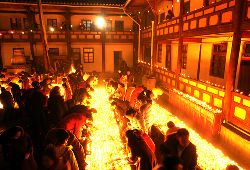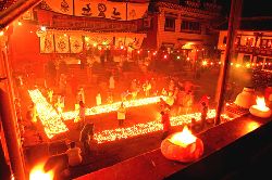 傳說(shuō)藏歷十月二十五日,是藏傳佛教格魯巴(俗稱(chēng)黃教)創(chuàng)始人宗喀巴大師圓寂成佛的日子。為了紀(jì)念這位杰出的宗教領(lǐng)袖,藏區(qū)各黃教寺廟和信徒于藏歷十月二十五日,舉行誦經(jīng)、磕頭,燈供儀式等隆重的祭祀活動(dòng),祭祀宗喀巴大師在天之靈和祈愿大師賜與善良的人們以吉祥幸福。