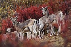 巖羊(學名:Pseudois nayaur),體型中等,形態介于野山羊與野綿羊之間。兩性具角,雄羊角粗大似牛角,但僅微向下后上方彎曲。以青草和各種灌叢枝葉為食。冬季啃食枯草。它們還常到固定的地點飲水,但到寒冷季節也可舔食冰雪。無固定獸徑和棲息場所。它們在懸崖峭壁只要有一腳之棱,便能攀登上去。一跳可達2、3米,若從高處向下更能縱身一躍10多米而不致摔傷。冬季發情交配,次年6、7月產仔,每年通常只產1仔。主要天敵是雪豹、豺、狼,以及禿鷲和金雕等大型猛禽。中國國家二級重點保護野生動物?! ?br />