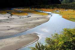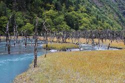 康東地區海拔最低的海子。澄碧的湖水與雪山融為一體,海子中細紗沉積,形成色彩斑斕的河床,令人仿佛置身海濱。海子中還有“湖中長樹,樹會走路”、“石頭說話”、“半壁穴居”等神奇景觀。
