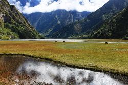 巴旺海海拔大致3100米左右,雪山腳下神秘的海子,發源于貢嘎主峰,從冰川上一路流下,順著貢嘎山西坡經典的徒步路線邊上流淌,奔騰到了貢嘎山腳下的群山懷抱中,形成了而今的巴旺海。