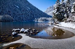 進入木格措的冬天就是進入了一片美麗的冰雪天地,然而在這里,除了冰雪,還有陽光、沙灘、藍天處處充滿著浪漫的氣息。早晨,當你站在海拔3780米的木格措海子觀景臺前,閉上眼睛細細品味雪山后暖暖陽光照射在身上的感覺;工作、生活、煩惱……一切拋在腦后!在景區(qū)的樹上到處是漂亮的冰掛,讓人仿佛一下子進入純潔晶瑩的人間仙境;在海子旁自然形成的一大片名為黃金海岸的沙灘,更是給來到這里的人們帶來情海的感受。