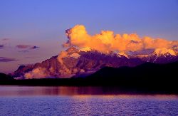 高原是云的故鄉。大團大團的云朵純粹潔白,掛在天空沉甸甸的,既濃重,又輕柔,如詩,如夢。清晨,云在山峰彌漫,在山谷涌動,近一些的飄在眼前,恍如人在云中;稍遠些的縈繞在山間,山似夢中仙境。雨雪之后,棉花似的云朵越開越大,瞬間變成了輕柔的白紗,在山間裊裊升起。再之后像雪白的羊群,似奔騰的戰馬,如匆忙的使者,從容飛渡,來去無蹤。