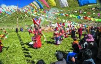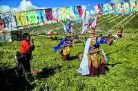 格薩爾王在藏族的傳說里是神子推巴噶瓦的化身,一生戎馬,揚善抑惡,宏揚佛法,傳播文化,成為藏族人民引以為自豪的曠世英雄。這是筆者在格薩爾誕生地——德格阿須草原現場拍攝的一組照片,它呈現了康巴藏區送文化下鄉,牧民如過節一樣歡樂的盛況。該組圖片為演出現場。