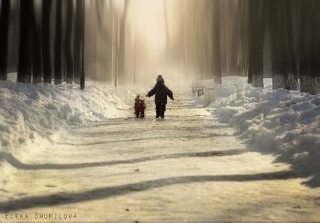 兩個毫不知情的小男孩兒無疑為這種電影畫面般精美的風景上添上了最美的一筆。無論是在一條泥濘的小路,還是陰冷的森林,或是在室內。Elena捕捉到了那束最完美的光線,正巧照射在小男孩兒的身上,如陰雨天突 然出現的太陽,一切都變得不再陰郁而充滿陽光。Elena說,“我比較喜歡自然光,無論是在室內還是室外,我喜歡各種各樣的光線環境,街燈,蠟燭,煙霧, 雨天,雪天,任何一種都能給予畫面更深度的視覺沖擊與意義。