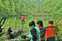 但如果讓我再去走從昌壩村到昌壩海子那條旅游線路——以昌壩海子為終點——我一定會約上幾位志同道合的朋友并拿出足夠多的時間慢慢去走,慢慢去欣賞沿路的風光,而不是匆匆趕路以致忽略了周遭的景致或忽略了對它們的欣賞;我們還會在綠寶石一樣的昌壩海子邊多待一些時間,或許一天一夜吧。在這一天一夜里,我們會試著繞湖一周;我或我們還會在更多的時間里靜靜地面對她,什么也不想——或許這就是咖教授所言的“靜海滌心”了。
