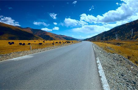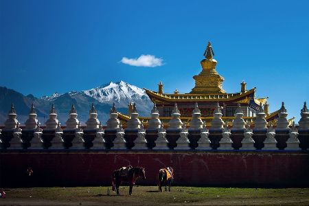 “塔公”,藏語意為“菩薩喜歡的地方”。相傳文成公主進藏時,途經此地,隨身攜帶的釋迦牟尼佛像忽然開口,示意愿留在此地。眾人立即就地按照佛像原貌復制一尊留下。從此,高原上有了被稱為“小大昭寺”的塔公寺。塔公草原也因此而得名。自康定沿川藏線西行,翻越折多山,過新都橋后北行不多時便是塔公了。沿線的河流、草原、森林、山體、寺廟、藏寨構成了濃郁的甘藏風情。高聳的雅拉雪山、起伏的草原、成群的牛羊和草原上金碧輝煌的“木雅經塔”讓人留連忘返。