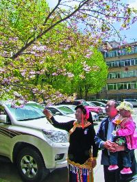 走在康定街頭,到處是瑰麗繽紛,成為街頭靚麗的風景線。走過樹下,撩人心扉,偶爾抬頭望望,或許你就能發現它的俏麗身姿。折多河沿岸,遍植了柳樹,眼睛放開在河的兩岸,都被春意的畫筆輕巧地抹了。輕輕,有如是女兒給眉的描,給唇的畫,給臉龐添的脂粉,很不經意,但又那么刻意、認真,不由得你心頭不溫婉起來,蕩起暖暖的一種氣息,和了柳梢上輕綠的飄動,直把那柳做了佳麗等待的那回眸一笑。