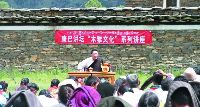 準備工作一切就緒。當“康巴講壇”主持人向巴多吉請出木雅·曲吉建才時,人群中爆發出一陣熱烈的掌聲。在100分鐘的講座中,木雅·曲吉建才以木雅文化為背景探討了木雅建筑的風格特點以及文化內涵。他通過自己步入建筑專業的經歷,講解了木雅石房建筑的結構、功能、外觀、特點,藏族建筑中的顏色、雕刻等建筑裝飾文化,以及木雅歌舞、飲食、服飾等生活文化。村民們一個個聚精會神,眼睛里閃著光,顯然,這樣貼近生活的知識講座對于他們來說,是充滿吸引力的。
