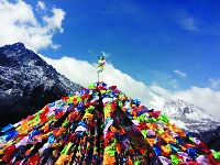 旅程的第七天,翻越雀兒山埡口,海拔5050米。因為山高路險,所以已經在開鑿隧道,三年后這里的路將會荒廢,人們也不再從這里經過。第一次翻越五千米的高度,心中難免激動,我跑下車,摸了摸被經幡圍繞的紀念碑。我想人生總有很多第一次,以后還會第一次翻越六千、七千米。