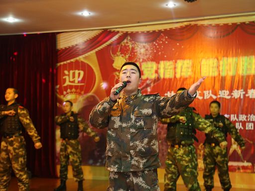 整臺匯演以“我們行進在強軍路上”為主題,共分“喜迎新年,官兵情懷,祝福祖國”三個篇章,晚會融歌舞、小品、相聲、雙簧等表演于一體,結構緊湊、熱情奔放、氣勢恢弘,營造出了昂揚振奮、拼搏進取的濃厚氛圍,充分展示了支隊官兵朝氣蓬勃的青春氣息和扎根高原、建功警營的豪情壯志。晚會在器樂合奏《鑼鼓喧天迎新春》拉開帷幕,融入歡慶腰鼓的喜慶元素,和著歡快的節奏,盡顯支隊特色文化隊的藝術魅力。歌舞表演《當兵就是那么帥》刻畫了支隊官兵時刻準備著上一線、打頭陣的戰斗激情;雙簧《快樂的武警官兵》展示了官兵熱愛警營生活、活潑可愛的一面;歌舞《迷彩假面舞》演繹了支隊官兵扎根高原,忠誠使命做奉獻的壯志豪情;《三句半》詮釋了支隊官兵牢記強軍目標,投身強軍實踐,勇挑重擔,沖鋒在前,報國為民的高尚情懷;詼諧夸張的手法以小品《歌倆好》、啞劇《新兵訓練》“兵演兵、兵寫兵”,表達官兵團結一心,刻苦訓練的精神風貌,博得了現場觀眾的陣陣掌聲,將晚會推向了一個又一個高潮。演出中,各基層中隊維穩駐訓分隊以團拜形式向全支隊官兵送上了新春的祝福。晚會在舞蹈表演《軍之魂》中落下帷幕。