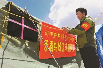 理塘縣是甘孜州最大的蟲草產區。每年蟲草采集季節,全縣24個鄉鎮的數萬人集中涌入曲登等四鄉主產區采集蟲草。為加強管理服務群眾,理塘縣今年組織57個工作組,800多名干部深入蟲草采集點,搭起帳篷現場辦公。巡回醫療組、法制宣傳組、文化生活服務組、安全生產組等小分隊深入山區為群眾做好全程“保姆式”服務。 (李向雨 攝影報道)