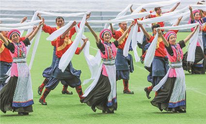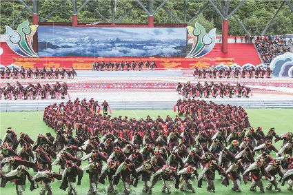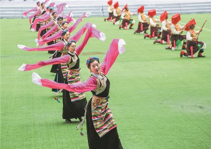 8月8日上午,康定北門體育場內歌舞升平、彩旗飄揚,第九屆康巴藝術節開幕式文藝演出在此進行最后一次帶妝彩排。本次彩排也讓我們對開幕式文藝演出充滿了期待。