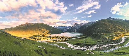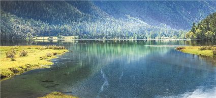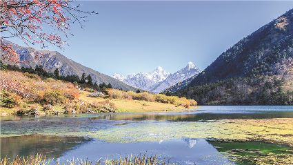 一天之中,數清晨和傍晚的海子最美,晨光中,湖水猶如鏡面般倒映著周圍的景物,天色漸漸亮了,周圍的景物也在 “鏡子”中漸漸清晰起來,特別是那些雪山下的海子,當太陽給雪山鍍上一層玫瑰金,倒影更美。傍晚,落日的余暉灑在海子和它周圍的景物上,又是另一種美,天上再有幾縷晚霞,更絕。四季里,就要看秋天的海子,因為這時海子周圍的景色是最美的,紅葉、黃葉、綠葉相間,便襯托得海子更美。