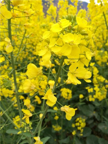 油菜花是我兒時的記憶,外婆為了生計,總會在家門口的幾畝菜地里滿滿當當的種上油菜,菜花開的時候,我就會端上一根長板凳、一根方板凳坐在油菜花前寫作業,油菜花的清香伴我度過了整個童年。記得兒時,每逢春季,田野里都會被一簇一簇的油菜花裝扮的金黃,大片的花兒披著一層金裝,偶爾一陣清風,大地上便掀起了片片的漣漪,烈陽下金光燦燦,甚是好看!