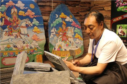 本屆非遺節期間,我州特色展館向游客展示了格薩爾彩繪石刻、藏族金屬鍛造技藝、藏文書法、噶瑪嘎孜畫派唐卡、阿西土陶燒制技藝、藏族牛羊毛編織技藝,南派藏醫藥等國家級、省級非遺項目。在歷時9天的活動中,我州的非物質文化遺產傳承人帶來了數百件非遺手工藝精品。大量的手工藝商品聚集展館的展示區,供參觀者挑選,有些非遺傳承人還在現場為顧客現場制作作品,向廣大參觀者展示了民族手工藝的制作流程。