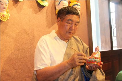 在這次雕塑作品展中,常常能聽到參觀者的感嘆,關于“漂亮”、“精致”、“出人意料”之類的贊美聲不絕于耳,但除了傳統民間手藝的傳承人,普通大眾對民間手工藝背后的文化、歷史知之甚少。正如格薩爾彩繪石刻傳承人巴德所說:“我來這里的目的,是為了讓更多人尤其是年輕一代親眼看看我們民族手工藝的制作過程,對我們自己的文化多一些了解?!?/span>
