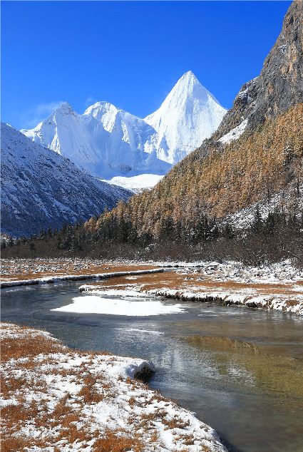 稻城亞丁給人的印象最深的應該是一片片令人沉醉的秋景或那無處不在的青楊林,更多人不知道的是,其實稻城亞丁在冬季的美麗更為引人入勝。山巒與樹木銀裝素裹,瀑布與湖泊冰清玉潔,藍色湖面的冰層在日出日落的溫差中,變換著奇妙的花紋細細的水流發出沁人心脾的音樂。不管是冰天雪地還是人文風情,或是原始風光,冬季的稻城亞丁都能為您帶來最美好的視覺盛宴。
