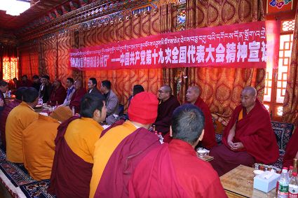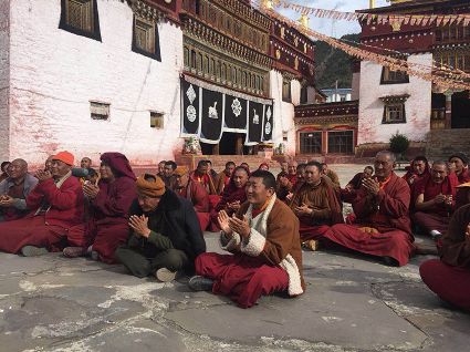 當宣講組一行來到郭沙寺時,寺廟僧人們早已迫不及待的等候在寺廟外。“聽說你們今天要來,我們全寺上下都很高興、很期待。”寺廟堪布甲它激動地說。