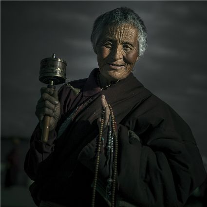 退休后學習攝影,經常在路途上看見許多手持經筒的人們,他們在白塔、神山和寺廟周圍轉著。一次我見一位藏族老人在休息,上前問道轉經筒一事,他給我說道:“手搖轉經筒也叫作手搖瑪尼輪,質地有金、銀、銅等,分大中小幾種,我這種拿在手中的轉經筒主體呈圓柱形,中間有軸以便轉動,圓筒中間裝著經咒。手搖轉經筒旁邊還開有耳孔,系著小墜子,我們叫它“甲多”。轉動手柄時,“甲多”也隨之而動,靠慣性加速經筒的旋轉,隨著轉經筒的快速旋轉,我的功德也在快速積累?!?/span>