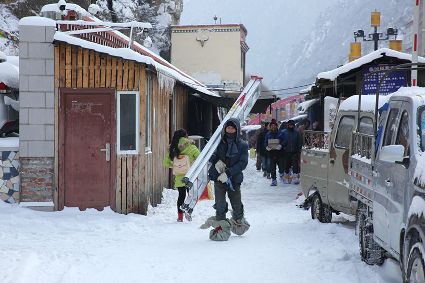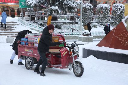“風雨送春歸,飛雪迎春到。已是懸崖百丈冰,猶有花枝俏。”2月4日傍晚,大片大片的雪花,從昏暗的天空中紛紛揚揚飄落下來。霎時間,山川、河流、城市,全都籠罩在白蒙蒙的大雪之中。黃昏的雪,下得深切切的,好象有千絲萬縷的情緒似的,又像海水一般洶涌,能夠淹沒一切,還有一絲揭開藏頭露尾般的裸露感。雪花形態(tài)萬千、晶瑩透亮,好象出征的戰(zhàn)士,披著銀色的盔甲,又像是一片片白色的戰(zhàn)帆在遠航…… 落光了葉子的柳樹上,掛滿了毛茸茸、亮晶晶的銀條兒;冬夏常青的松樹和柏樹,堆滿了蓬松松、沉甸甸的雪球。那一片雪花在空中舞動著各種姿勢,或飛翔,或盤旋,或直直地快速墜落,鋪落在地上。“忽如一夜春風來,千樹萬樹梨花開”——這是雪的燦爛;一場瑞雪,扮美了康定,年味籠罩的康定城,嫵媚妖嬈。無論是背水姑娘、有著年味兒的將軍橋,還是大紅燈籠高高掛的康定門,都在雪后別有一番景致。與美景合影、和朋友玩雪都是最佳選擇。在風雪中,交警不畏嚴寒默默堅守崗位 ,指揮交通疏堵保暢。他們的身影在皚皚風雪路上站成一道道最美的風景,溫暖了康定。從早上六點開始,康定的環(huán)衛(wèi)工就迎著刺骨的寒風,開始了除冰雪保通暢的行動,在積雪覆蓋的康定城,早起的商販樂呵呵地做起了買賣;民工迎著雪后的寒風出門務工,他們是最可敬的人。