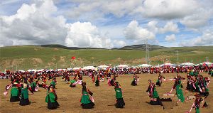 8月4日下午,作為2018四川·理塘第二屆倉央嘉措詩歌節子項目的縣舞比賽和千人鍋莊表演在理塘縣八一賽馬場舉行,來自理塘縣各鄉鎮、縣級各部門的11支隊伍共800余人參賽。