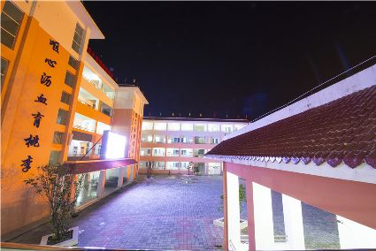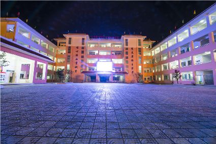 走進暮色中,華燈初上,夜幕下的寄宿制學校更加美麗。具有幾何構成美感的教學樓鐫刻著寒來暑往生琴書,嘔心瀝血育桃李。
