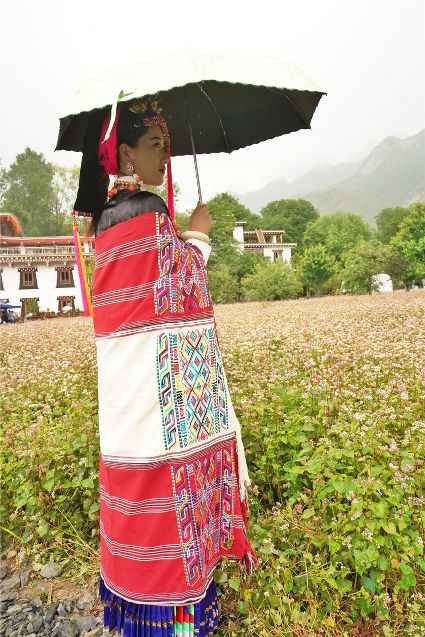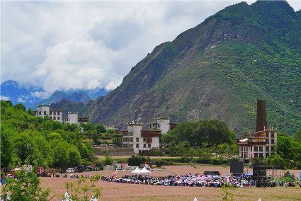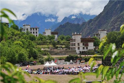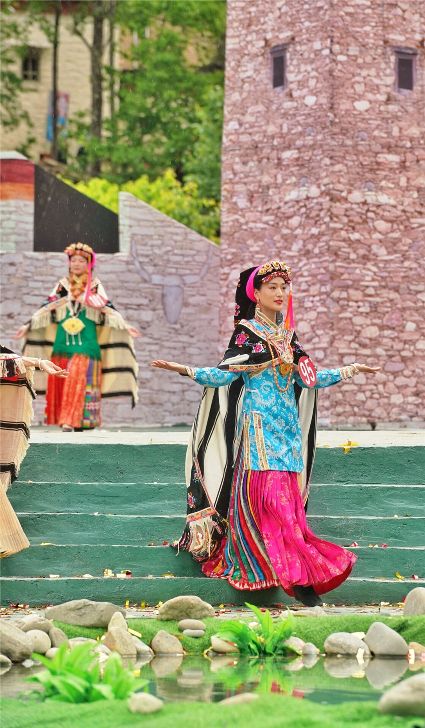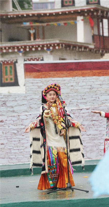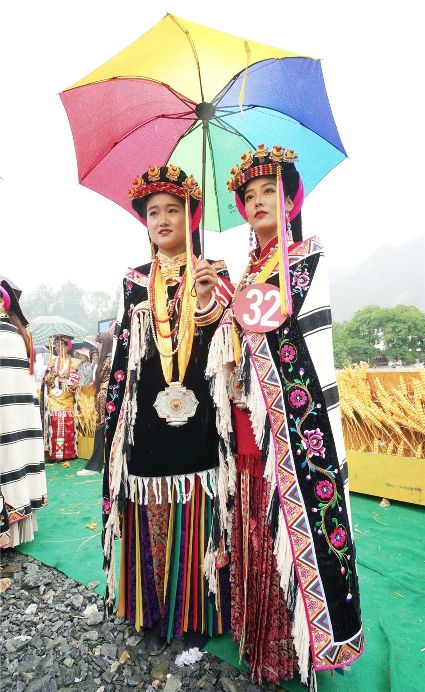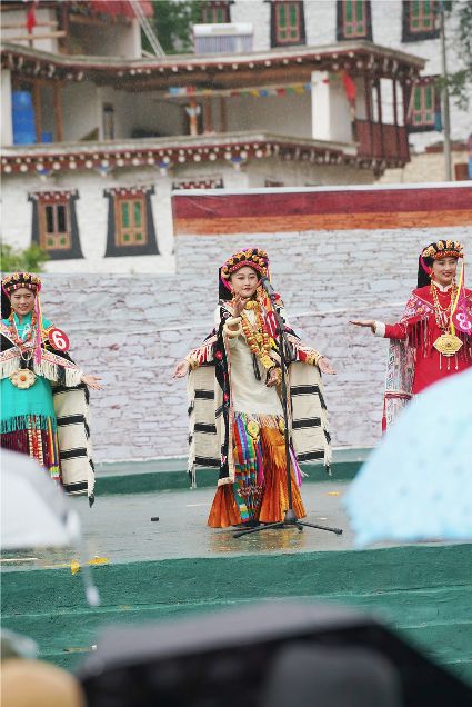 比賽開始不久,現場下起了小雨,但絲毫沒有影響熱烈氣氛。臺上的佳麗們,略施粉黛,穿著承載著嘉絨風情文化的民族盛裝,自我介紹,優雅展示。臺下,則是鄉民齊聚,熱情高漲。大家紛紛到場,為佳麗們加油助威。據介紹,丹巴出美女始于漢代的東女國時期。古時每年農作物收獲的時節,丹巴各村各寨都要舉行盛大的選美和祭祀活動。