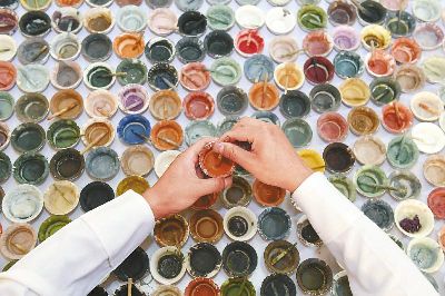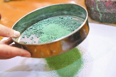 傳統的唐卡是藏族文化中一種獨具特色的繪畫藝術形式,需經繃布、打磨、定位、起稿、涂色、暈染、拉線條、拉金線等多種程序,天然原料作色保證了畫作幾百年后色澤還依然鮮艷。在著著的畫室里,擺放了百個裝滿各色礦物質顏料的調色小碗,“上色用的是延續千年的礦物研磨顏料。”為了讓顏料作色更均勻,著著還用自己的辦法搞出了專用的顏料攪拌機。