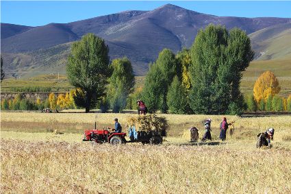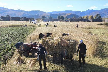 “我們要利用這段晴好的季節,抓緊收割。”在廣袤的原野,村民們開鐮收割青稞,一輛輛滿載成捆青稞的拖拉機在田間和鄉村小道上歡快地疾馳。
