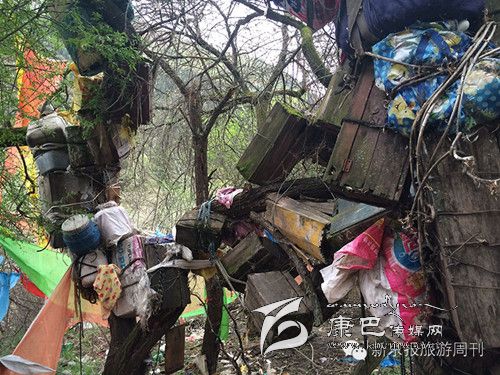 樹葬大都是13歲以下的未成年人。一般家庭幼兒死亡率高的就把木箱掛在高處,女嬰死后一般掛在最下端,有的則將尸體火化后裝入泥罐內再懸掛在杉樹上。