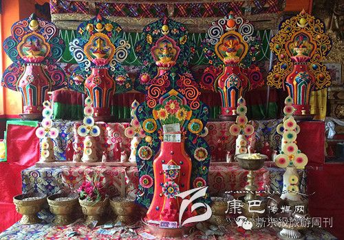 而酥油花,是用酥油作原料造出的各種佛像、人物、山水、亭臺樓閣、飛禽走獸、花卉樹木等藝術精品。其中添加了色素后,色彩艷麗。