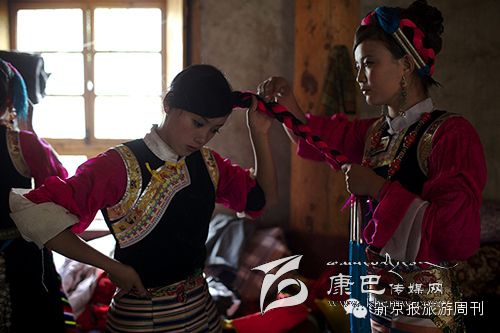 藏戲服裝鮮艷,最好的是女人頭上的花環(huán),春天的姹紫嫣紅都盛放在她的頭上,春天真的來(lái)了。長(zhǎng)調(diào)悠揚(yáng),回蕩在河谷上空。年輕的巴塘人說(shuō),有些聽(tīng)不懂了,但是圍坐的老人們都認(rèn)真觀摩,跟著情節(jié)唏噓或者含笑。附近寺廟里的小喇嘛也來(lái)了,圍著小伙伴的摩托車笑笑鬧鬧。
