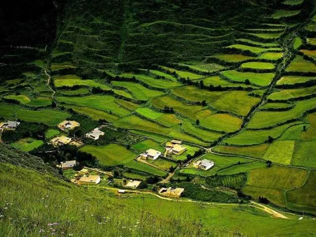村子坐落在兩座大山之間的平原地帶,夏天和秋天是村子最美的時候,夏天村子里的青稞綠油油的一片,秋天變成一浪又一浪的金燦燦,甚是壯觀…