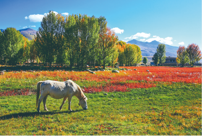三月的四川稻城縣香格里拉鎮,春風與陽光攜手而至,高原的寒意悄然退去,草長鶯飛,綠葉在枝頭伸展,繁花在大地擁簇。