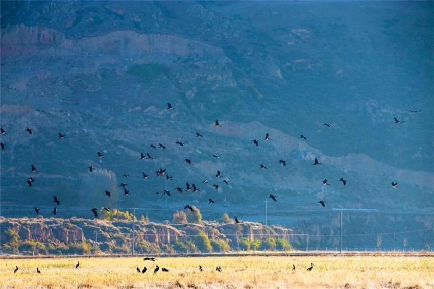 自2013年在鮮水河濕地公園固依壩子發現了大批黑鸛后,每年10月都有大批的黑鸛在鮮水河濕地公園內遷徙和停歇,這在全國尚不多見,足以證明濕地公園生態環境的平衡和和諧,同時也印證了鮮水河濕地公園已經成為黑鸛種群的重要棲息地,具有重要的保護意義。