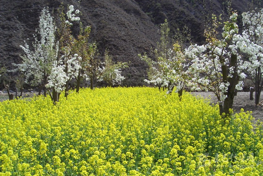 試想遠處的雪山白雪皚皚,身旁有粉紅的桃花、雪白的梨花、金黃的油菜花,絢麗斑斕,光彩奪目,有春天的生機和活力,多了一種靈氣和不落塵埃的灑脫。賞花累了,沐浴在海螺溝的溫泉里,身體宛如畫龍點睛漂浮的暖云,能深切感受到來自海螺溝冰川地底的熱力。心境或怡然自得,或超脫塵世,或寧靜澄明,或天人合一。春天里的海螺溝是花的海洋,是春的世界,是人間的仙境。